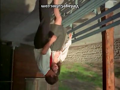 Huckleberry tramp sucks on a fat spear and gets fucked from behind on couch